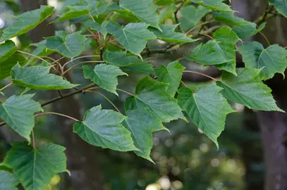 Acer capillipes is a variety of Snake Bark Maple grown for its rich foliage and interesting flowers. The leaves on this deciduous tree emerge pink, age to mid-green, then develop red and yellow tones in autumn before falling. The bark is smooth, olive-green, and has narrow, vertical, white stripes which gives rise to its common name. It typically grows to 8 m tall and 6 m wide with a rounded form. Acer capillipes is perfect for growing as a specimen tree in parks and larger gardens. It is also well suited for avenue planting or to border an entrance.