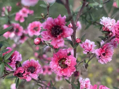 Leptospermum Kiwi is a variety of Manuka renowned for its pretty flowers and attractive foliage. During spring and summer, it produces single, dark pink flowers with a wax like centre. These are produced en masse and are complemented with the fine, dark green foliage which is tinged with bronze as it grows to 1.2 m tall and 75 cm wide. Leptospermum scoparium Kiwi is commonly used as a backdrop for smaller plants, included in a mixed planting, maintained in a container, or trimmed into a hedge.