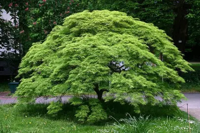 Acer palmatum is a Japanese Maple grown for its rich display of delicate foliage that changes colour with the seasons. Leaves on this small, deciduous tree emerge light green in spring, age to mid-green through summer, then turn a lovely purple-red in autumn before falling. It grows with an upright habit, producing a broad crown about 5 m tall and 3 m wide when mature. Acer palmatum is a magnificent specimen that is ideal for parks, home gardens, or growing anywhere as a specimen. It makes for a lovely shade tree and group plantings give a dazzling display in autumn.