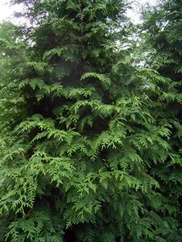 Thuja plicata, commonly known as the Western Red Cedar, is a conifer that grows into an attractive and large tree. It grows with a dense, conical shape, producing green foliage that develops distinctive bronze tones during winter as it slowly grows to about 25 m tall and 15 m wide. The Western Red Cedar is commonly grown for timber production, but also makes for a stunning specimen in a large garden or park.