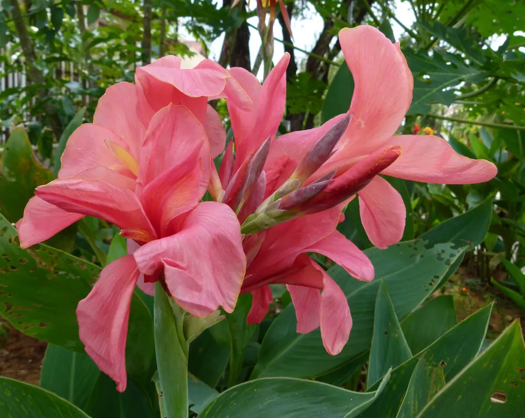 Canna musifolia is a variety of Canna Lily grown for its impressive flowers and foliage. It features large and showy, salmon pink flowers which are...