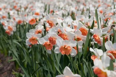 “Precocious” is a stunning variety of Daffodil that features white flowers with a colourful, coral-pink centre. The showy blooms are borne on sturdy stems through late spring above the lush, grass-like foliage. The combination of flowers and dark green leaves is impressive and lets you know spring has arrived. This perennial plant typically grows to 40 cm tall and 20 cm wide, performing best when positioned in full sun on a well-drained site. It is tolerant of short periods of dry, frost, cool climates, and will die back during these times to regrow when conditions start to warm. “Precocious” is commonly included in cottage gardens, planted around outdoor living areas, used in border plantings, planted around the base of deciduous trees and shrubs, or maintained in a container. A mass planting is a must with this variety with bulbs spaced 15-20 cm apart and planted 8-10 cm deep.