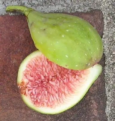 Fig Ventura produces fruit with a green skin and red flesh in autumn. The sweet fruit are large sized and produced mid-season. It grows as a large, spreading tree and will bear fruit after 3-5 years. This deciduous tree carries large and deeply lobed, green leaves which develop yellow tones in autumn before falling as it reaches 4 m tall and 3 m wide. The Ventura Fig tree is commonly grown for fruit production or as a specimen. It looks great in a mixed planting and is a good choice for attracting birds into the garden.
