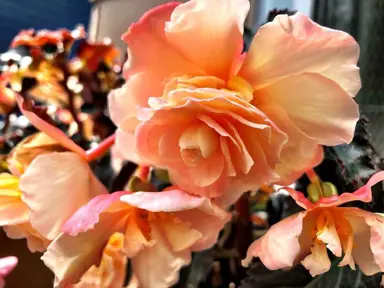 Begonia Painters Palette is a tender perennial is grown for its colourful and showy flowers. It grows as a bushy plant with the foliage comprising lush leaves variegated with purple, green, and cream. It typically grows to 40 cm tall and 35 cm wide. Begonia Painters Palette is commonly grown indoors as a potted plant or planted outdoors in warmer environments in borders or around outdoor living areas.