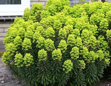Euphorbia Baby Charm is renowned for its dark green-blue foliage, compact growth habit, and pretty flowers. Clusters of showy, lime green flowers adorn the plant from late winter right though into summer. These remarkable blooms are complemented by the lush foliage as it grows to 45 cm tall and the same wide. Euphorbia Baby Charm is ideal for including in a mixed or border planting, including in cottage and pool gardens, planting around outdoor living areas, or maintaining in a container.