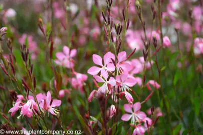 Gaura ‘Ballerina Rose’ is a graceful perennial featuring soft rose-coloured flowers that flutter on slender stems. Blooming from spring through autumn, it adds warm colour and charm to borders, containers, and cottage gardens across New Zealand.