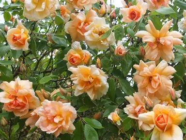 The Crepuscule Rose is a near thornless climbing rose that features delightful, apricot-orange flowers. The impressive blooms coat the plant and emerge in spring and continue until autumn. The foliage comprises small-sized, dark green leaves which provide a lovely backdrop to the flowers as it grows to 3 m tall and the same wide. The Crepuscule Rose is commonly trained onto a trellis in a courtyard or cottage garden, planted to lavish a fence, or included anywhere the beauty can be appreciated.