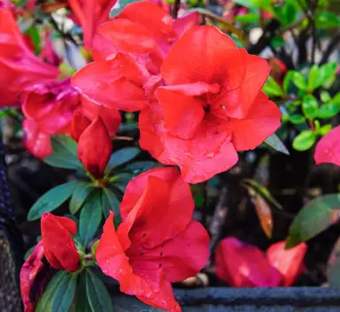 Azalea Carnival Rocket is grown for its lovely form and profuse flowering. This hardy, evergreen shrub produces masses of large and showy, red blooms in spring as it grows to 1.2 m tall and 1.5 m wide. Azalea Carnival Rocket is a great choice for adding to a mixed or border planting, planting around outdoor living areas such as pool and barbecue area, including in cottage gardens, or using anywhere a stunning plant is required. Mass planting provides an amazing display with this variety.