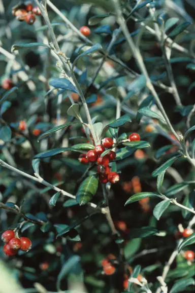 Corokia 'Red Wonder' is a NZ native shrub featuring narrow, olive-green foliage. New foliage has a layer of felt which gives the plant an overall grey colouring. Small, yellow flowers are produced in spring and are followed by masses of bright red berries in late summer as it reaches 2 m tall and 1.5 m wide. Corokia 'Red Wonder' is commonly trimmed into a hedge, added to a mixed planting, used on challenging sites, or planted to border an entrance.