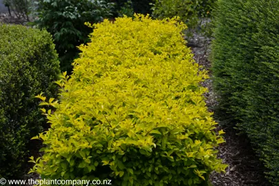 Duranta Sheenas Gold is a bushy, evergreen shrub with bright yellow foliage and light, lavender-blue flowers. The flowers appear from spring through autumn and add an elegant touch to the lush foliage. It typically grows to 3 m tall and 2 m wide. Duranta Sheenas Gold makes a colourful addition to any garden and is often trimmed into a hedge. It can be used in mixed plantings, maintained in a container, grown as a standard, planted around outdoor living areas, or used to provide an amazing splash of colour.