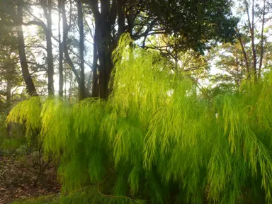 Acacia Lime Magik is a small tree grown for its attractive foliage and great form. It features soft, mid-green foliage, which is held with a pendulous manner. Small, pale-yellow flowers are produced in spring as it grows to about 8 m tall and 3 m wide. Acacia Lime Magik is commonly grown as an elegant specimen or included in a mixed planting.