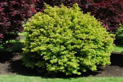 Acer palmatum Hanami Nishiki is a stunning Japanese Maple due to its delicate foliage and small stature. Small and soft looking leaves emerge yellow-green in spring with reddish margins. They mature to a light green in summer before turning spectacular shades of yellow and orange in autumn before falling. It grows with a somewhat rounded shape to about 2.5 m tall and the same wide. Acer Hanami Nishiki makes for a magnificent specimen and is ideal for including in a mixed planting, planting to soften a bland wall, maintaining in a container or courtyard garden, planting to border an entrance, or for using anywhere the spectacular colours can be enjoyed.