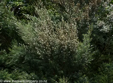 Kunzea triregensis, commonly known as the Three Kings Kānuka, is a fast-growing, NZ native tree. It features small, dark green leaves that release a pleasant fragrance when touched or in a light breeze. Small, white flowers are borne in abundance through summer and are great for attracting birds and bees. This evergreen typically grows to 10 m in height and 4 m in width, and can be trimmed as necessary. Kunzea triregensis is commonly grown for its sheltering properties or used in native revegetation and riparian plantings.